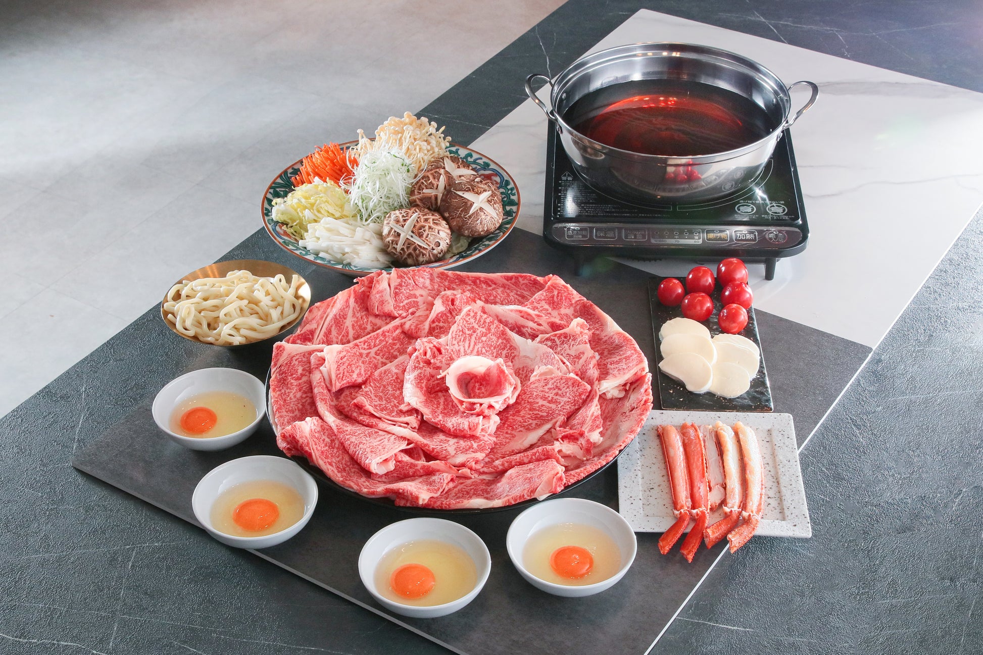 顶级A5和牛肩胛肉&北海道产帝王蟹寿喜焼套餐